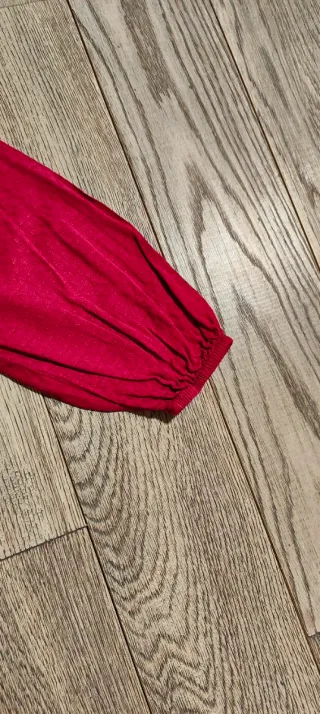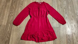 Usato in ottime condizioni. Abito casual a manica lunga, tinta unita di colore bordeaux; TG. S da ragazza con scollo frontale a V, elastico in vita, elastico sull' estremità delle maniche, gonna a balze e tessuto 100% viscosa. MISURE: spalle 37 cm, da ascella a ascella 42 cm e lunghezza 83 cm.