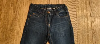 Usati in ottime condizioni. Jeans, lavaggio blu scuro, TG. 10-11 anni (146 cm) da bambina con elastico in vita, passanti per la cintura in vita, tasche frontali, tasche sul retro e tessuto 79% cotone, 19% poliestere e 2% elastan.