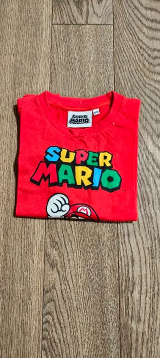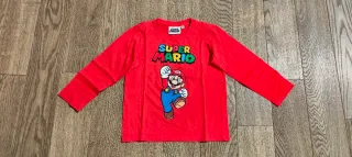 Usata in ottime condizioni. Maglietta a manica lunga da bambino TG. 4-5 anni da bambino con stampa frontale che raffigura "Super Mario" su sfondo a tinta unita di colore arancione e tessuto 100% cotone.