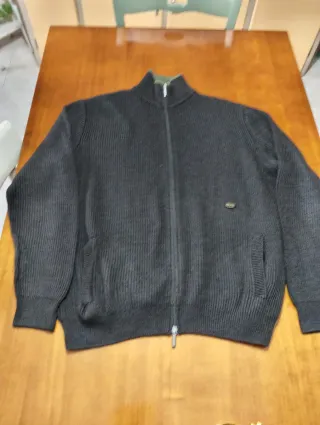 Maglione da uomo in pura lana merino, con chiusura a zip. - Materiale: 100% lana merino - Colore: marrone - Design a costine - Collo alto - Tasche laterali.alt. 66 . Spalle 45 . Circonferenza torace 114. Maniche 64. Nessun difetto.(3)