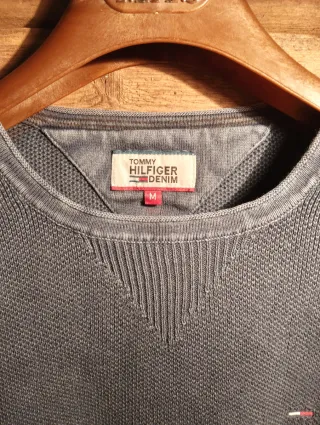 Maglione girocollo Tommy Hilfiger da uomo. - Tessuto a trama diagonale. - Logo Tommy Hilfiger discreto sul petto. - Polsini e fondo a costine.alt. 73 Spalle 44. Circonferenza torace 96 . maniche 70. Cotone blu/grigio nessun difetto (4)