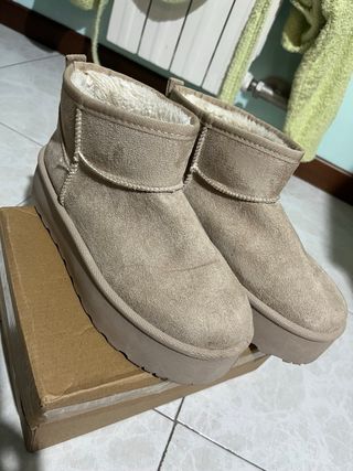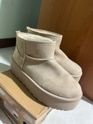 Caldi stivali beige con un design moderno e suola platform. - Fodera interna morbida e accogliente. - Materiale esterno effetto scamosciato. - Suola alta e robusta.