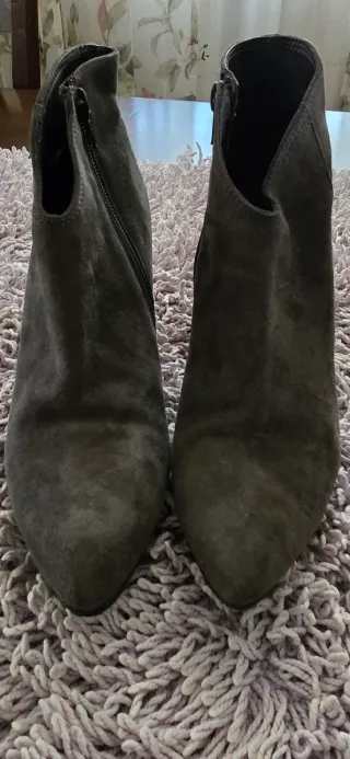 Eleganti stivaletti in camoscio grigio. - Materiale scamosciato. - Zip laterale per una facile calzata. - Punta affusolata.