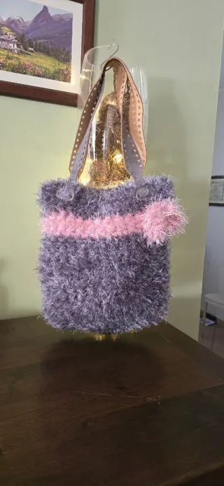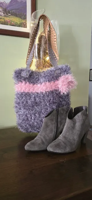 Borsa fatta a mano grigia e rosa