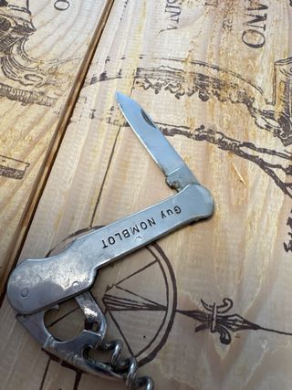 Coltellino multiuso da collezione, con lama e cavatappi. - Incisione ST-LEGER sur DHEUNE sul corpo. - Struttura in metallo. - Design vintage.