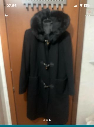 Elegante cappotto da donna con dettagli in pelliccia. - Chiusura con alamari. - Cappuccio bordato in pelliccia. - Tasche frontali.