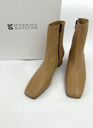 Prezzo da listino - €239 Nuovi , nella scatola Stivaletti tronchetti, Massimo Santini, donna # 37, Lunghezza di sottopiede - 24,5 cm Tacco - 3,5 cm Colore - nude Vera pelle Made in Italy