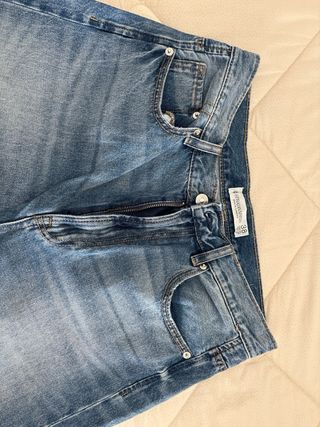 Jeans a vita alta con gamba larga. - Tessuto denim. - Chiusura con zip e bottone. - Tasche. - Vestibilità comoda.
