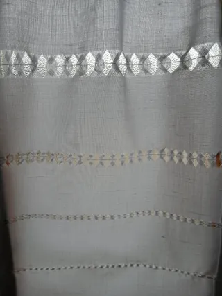 Deliziose tendine con ricami a sfilature, perfette per aggiungere un tocco di eleganza alla tua casa. Realizzate con cura artigianale. - Set di 2 tendine. - Motivo a sfilature. - Finitura artigianale. Misura altezza non sono considerati lacci