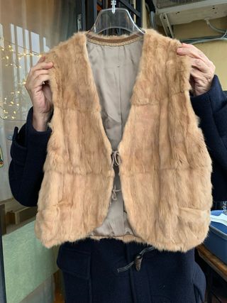 Elegante gilet in visone vintage, un capo unico per aggiungere un tocco di classe al tuo guardaroba. - Chiusura con laccetti. - Fodera interna in tessuto. - Design senza maniche. - Taschini sul davanti