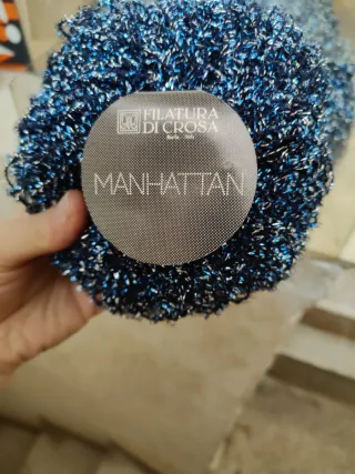 Lotto di 10 gomitoli di filato misto poliestere. - Colore blu con fili argentati. - Effetto scintillante.