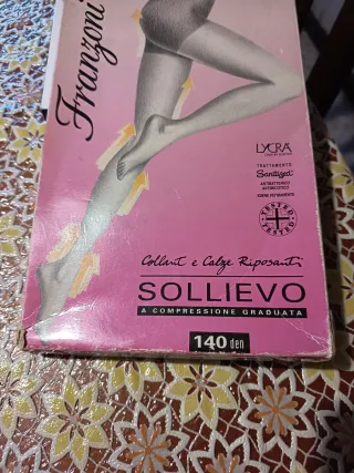 Collant e calze riposanti Franzoni. - Trattamento Sanitized antibatterico e antimicotico. - Lycra by Dupont. - Compressione graduata.