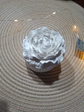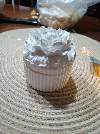 Elegante portagioie in gesso, perfetto per custodire i tuoi preziosi. - Design a forma di peonia - Finitura in gesso. - Base scanalata.