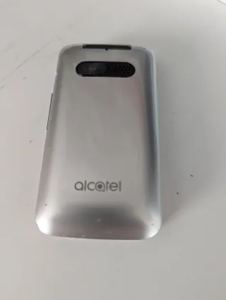 Telefono mobile Alcatel in color argento. Design elegante e compatto. Fotocamera integrata.