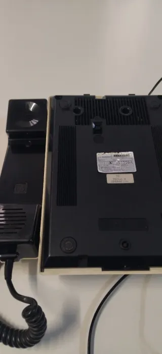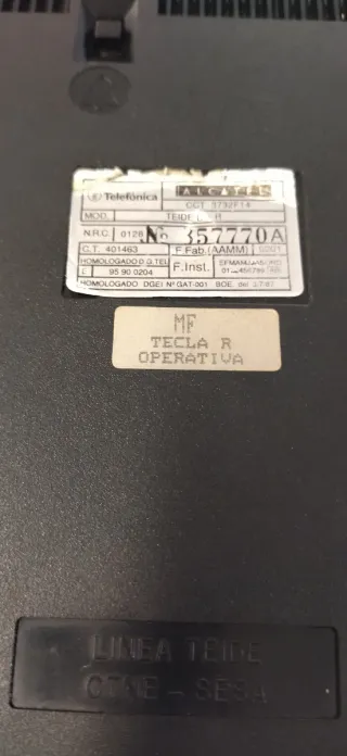 Telefono fisso con tastiera modello Teide di Alcatel. Dettagli: Modello: TEIDE R, Numero di serie: 357770A, Omologato DGEI N° GAT-001.