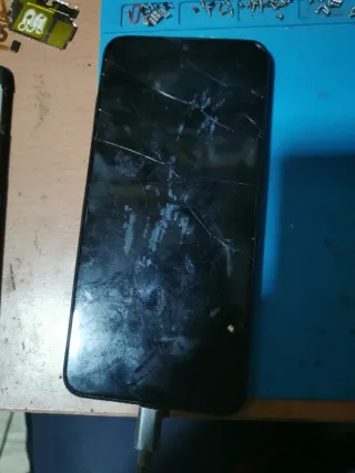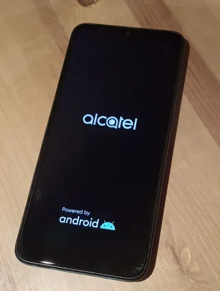 Telefono mobile Alcatel 1SE in colore nero. Telefono per pezzi, schermo rotto, leggermente piegato, quando caricato illumina lo schermo, non si conosce la password o alcun codice, è per pezzi. - Schermo con crepe. - Porta di carica visibile.