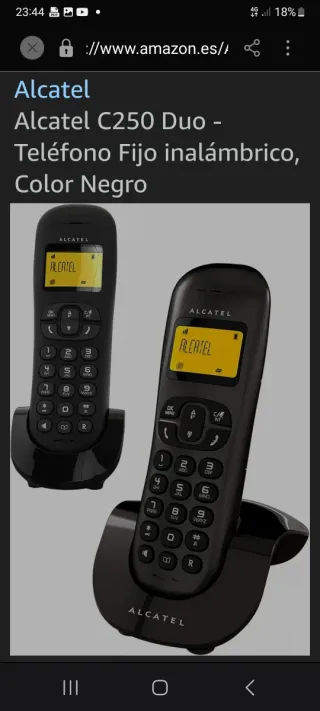 Telefono cordless Alcatel C250 Duo, ideale per casa o ufficio. Include due terminali per una maggiore comodità. Design moderno in colore nero. Schermo con identificatore di chiamate. Funzione vivavoce. Base di ricarica per entrambi i terminali.