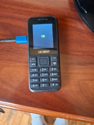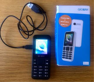 Telefono mobile Alcatel 1066 in colore nero. Un dispositivo semplice e funzionale. - Schermo a colori. - Tastiera numerica. - Connessione USB. Viene con il cavo USB, ma non con quello degli auricolari.