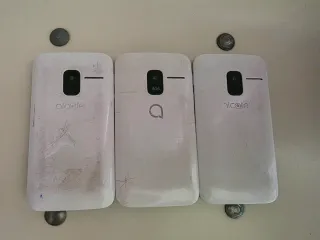Si vendono tre telefoni mobili Alcatel. Solo uno ha la batteria, non so se funzionano come si vedono nelle foto senza caricatore. - Colore nero. - Tastiera numerica. - Schermo a colori.
