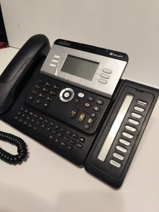 Telefono Alcatel 4039 ricondizionato, pronto all'uso. Include moduli di tasti aggiuntivi. Schermo a 5 linee regolabile, 40 tasti programmabili e 10 tasti funzione, vivavoce, tastiera alfanumerica, jack per cuffie.