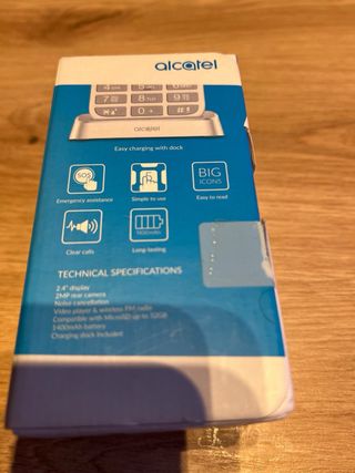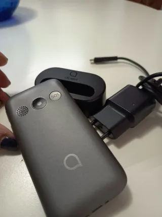 Telefono mobile Alcatel con un design semplice e funzionale. Include base caricatore e caricatore. Ha fotocamera, bluetooth, radio, calcolatrice, ecc. Ideale per gli anziani, dice a voce i numeri che si stanno componendo. Ha anche la connessione per gli auricolari per ascoltare la radio e le chiamate. Colore nero e bianco. Include base di carica.