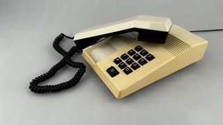 Telefono da collezione Alcatel Web Touch. Design retrò con tastiera integrata. Grande schermo. Auricolari con cavo a spirale.