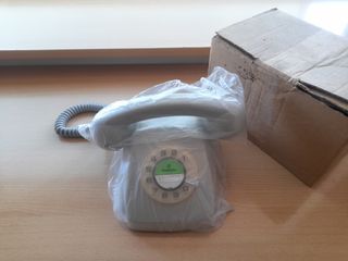 Antico telefono HERALDO, di colore grigio. Prodotto da ALCATEL (Citesa) per la CTNE (Teléfonica). Stato: NUOVO A ESTRENAR, nella sua confezione originale. Mai utilizzato. È nuovo dell'epoca. È raro trovarlo in questo stato, senza mai essere stato usato nella sua confezione originale. SPEDIZIONE DISPONIBILE. Per qualsiasi domanda, consultare.