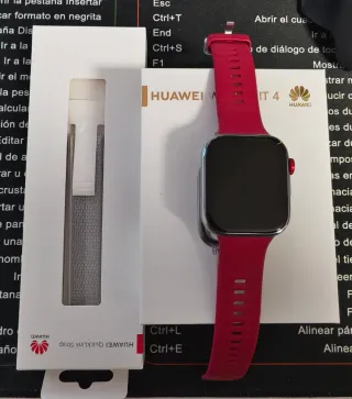Orologio intelligente Huawei Watch Fit 4 PRO. NON APRIRE, COMPLETAMENTE NUOVO - Design moderno ed elegante. - Cinturino in silicone comodo. - Lunetta con dettagli in rosso. - 10 giorni di batteria - Compatibile con iOS - Android