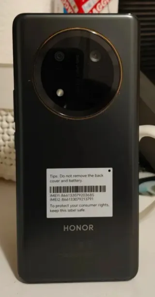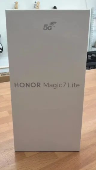 Telefono mobile Honor Magic 7 Lite con finitura grigia e dettagli dorati. Nuovo, mai aperto. Grande capacità di archiviazione. - Schermo AMOLED da 6,78 pollici a 120Hz. - Fotocamera principale da 16 MP e tripla fotocamera posteriore da 108+5+2 MP. - Batteria da 6600 mAh. - Processore Snapdragon 6 Gen 1. - 8 GB di RAM. Include garanzia di un anno