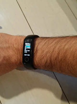 Braccialetto di attività Honor Band 4 in colore nero. Lo vendo perché mi sono comprato un nuovo modello, anche se l'ho usato fino a poco fa. Manca il fermaglio del cinturino che può essere acquistato a poco o legato come l'ho usato io. Include il suo caricatore. Recentemente formattato. È necessaria l'app Honor Health per utilizzarla e da lì cambiare la lingua. Schermo AMOLED da 0,95 pollici a colori con vetro curvo 2,5D. Batteria da 100 mAh che offre tra 6 e 14 giorni di utilizzo. Resistenza all'acqua: certificazione 5ATM adatta per il nuoto. Bluetooth 4.2. Android 4.4+ o iOS 9.0+.