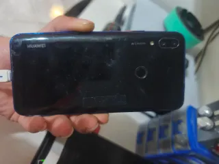 Marca: Huawei Modello: P Smart 2019 (potenzialmente Y7 2019 o P20 Lite) Colore: Blu sfumato ('Aurora Blue' o 'Sapphire Blue') Fotocamera: Sistema fotografico dual posteriore con capacità di intelligenza artificiale (AI Camera) Sicurezza: Sensore di impronte digitali circolare montato sul retro (Schermo graffiato, funziona perfettamente)