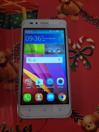 Smartphone Huawei, usato in ottime condizioni, qualche segno di usura, meramente estetico, sullo chassis, display 5" HD 720x1280 px, fotocamera anteriore da 5MPX/2.0 e posteriore da 13 MPX 2.2, processore quad-core Qualcomm MSM8917 Snapdragon 425 1.4 Ghz, 2 GB RAM + 16 GB memoria interna, batteria da 3020 mAh e sistema operativo Android Nougat 7.0, dismesso per "obsolescenza programmata" della App della banca.