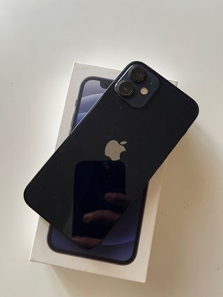 iPhone 12 mini in colore malva con 64 GB di spazio di archiviazione. La batteria è all'83%. Il retro è leggermente danneggiato. Venduto con 2 custodie, 1 cavo originale Apple, gli auricolari Apple originali.