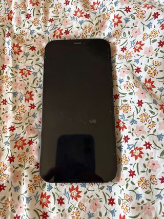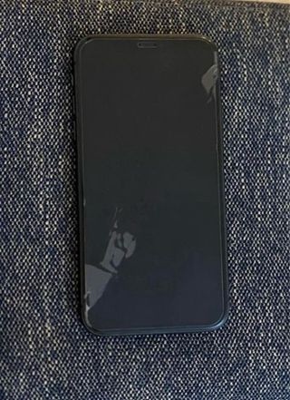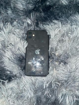 Telefono cellulare iPhone 11 in colore nero. Si trova in buone condizioni. - Schermo da 6,1 pollici. - Sistema a doppia fotocamera. - Chip A13 Bionic. Lo schermo ha delle crepe ma si vede perfettamente, nessun pixel che non si vede né alcuna zona dove non funzioni il touch. Nella foto dello schermo spento si vede una bolla del vetro protettivo, e nella foto dello schermo acceso si notano le crepe ma si vede che non fallisce nessun pixel. I pulsanti del volume, accensione e la linguetta della modalità riposo funzionano perfettamente. Il cellulare funziona bene, come quando l'ho comprato, solo che lo cambio per mancanza di spazio di archiviazione (è da 64GB).