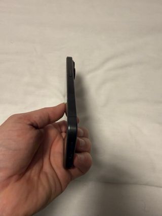 Telefono cellulare iPhone 13 Pro in colore grigio spaziale. - Schermo da 6,1 pollici. - Condizione estetica al 75%. - Il telefono funziona perfettamente, ma presenta un difetto estetico sullo schermo: una piccola macchia nera (pixel morti) nell'angolo in basso a destra. Non influisce sul touch o sull'uso quotidiano del cellulare, è puramente visivo e si nota a malapena. - Face ID non funziona.