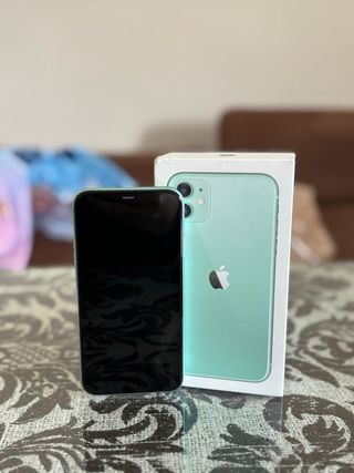 Telefono cellulare iPhone 11 in colore verde. - Schermo da 6,1 pollici. - Sistema a doppia fotocamera. - Chip A13 Bionic. - Batteria al 78%. - Telefono molto ben curato, senza graffi, molto fluido. - Fotocamera completamente intatta. Prezzo negoziabile
