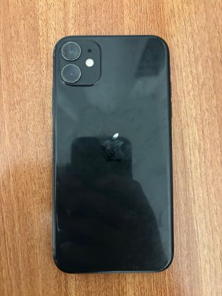 Telefono cellulare iPhone 11 in colore nero. - Schermo da 6,1 pollici. - Sistema a doppia fotocamera. - Chip A13 Bionic. Salute della batteria attorno al settanta.