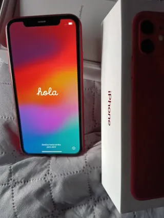 Telefono cellulare iPhone 11 in colore rosso, presentato nella sua scatola originale. Include il telefono e la sua scatola. Non include il caricatore.