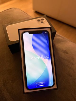 Telefono cellulare iPhone 11 Pro Max. - Schermo da 6,5 pollici. - Finitura in colore argento. - Scatola originale - Custodie in regalo