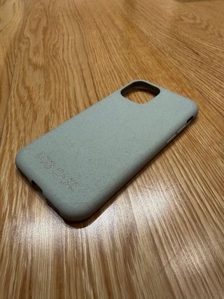 Custodia per iPhone 11 Pro con un design texturizzato e finitura opaca. Colore verde chiaro. Materiale compostabile.