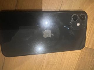 iPhone 11 con finitura nera e 256GB di spazio di archiviazione. Lo schermo è buono, Face ID funziona bene, la fotocamera posteriore è buona, ma il retro è rotto da un colpo.