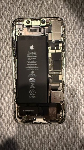 Componenti interni di un iPhone 11, ideali per ricambi o riparazioni. - Batteria Li-ion (3.83V 11.91Wh). - Taptic Engine. - Vassoio SIM. - Scheda madre. - Fotocamere posteriori. - Fotocamera frontale. - ecc.