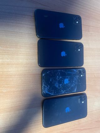 In vendita lotto di 4 telefoni iPhone 11 in colore nero. Li vendo per mancanza di tempo per ripararli. Si accendono e funzionano tutti, ma come si vede nella foto uno di essi ha la parte posteriore rotta e due di essi la parte anteriore, tre di essi sono liberi da iCloud e gli schermi funzionano tutti, anche quelli rotti, ma in due di essi è disconnesso. Per qualsiasi domanda, chiedere senza impegno.
