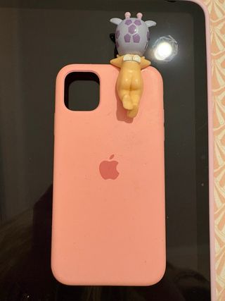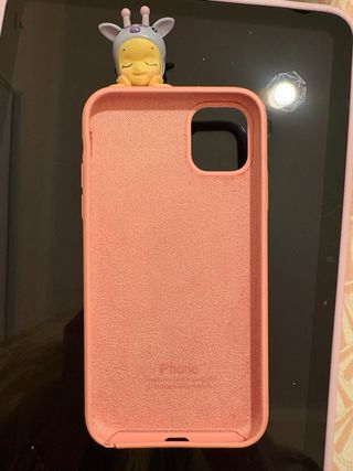 Custodia per iPhone 11 di colore rosa con un sonny angel. Design accattivante. Materiale morbido al tatto.