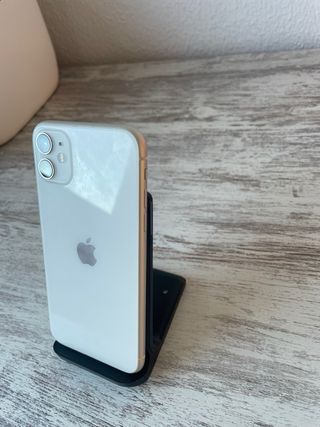 Telefono mobile iPhone 11 in bianco con 128GB di spazio di archiviazione. Include caricatore e 5 custodie. - Schermo da 6,1 pollici. - Fotocamera doppia da 12MP. - Chip A13 Bionic.