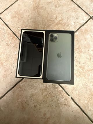 iPhone 11 Pro Max in colore Verde Notte con 64GB di spazio di archiviazione. - Schermo da 6,5 pollici. - Sistema di tripla fotocamera posteriore. - Finitura in vetro e acciaio inossidabile opaco. Unico difetto: vetro posteriore. Viene con scatola.