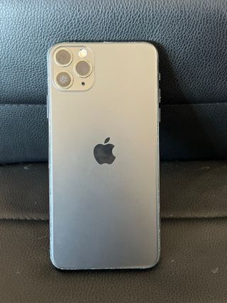Telefono cellulare iPhone 11 Pro Max in colore nero. - Schermo da 6,5 pollici. - Sistema a tripla fotocamera. - Chip A13 Bionic. - Con varie custodie - Nella confezione originale - Messaggio sulla batteria nella foto NON SOTTO I 120