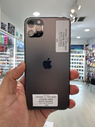 Telefono cellulare iPhone 11 Pro Max in colore grigio con 256GB di spazio di archiviazione. - Modello: iPhone 11 Pro Max - Capacità: 256GB - Colore: Grigio - Include 1 anno di garanzia - Prezzo: 349€ - Stato batteria 100% - Acquista presso il negozio fisico Mobile Hub Donostia, Calle Trueba 11 Bajo 5, Donostia San Sebastian.