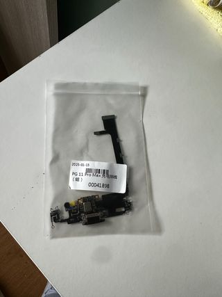 Componente di ricambio per il connettore di carica di un iPhone 11 Pro Max in colore nero. Include il flex di carica e il modulo di connessione. Pezza di ricambio per riparazione. Non originale ma perfettamente usata.