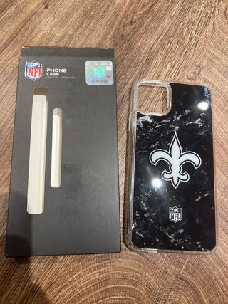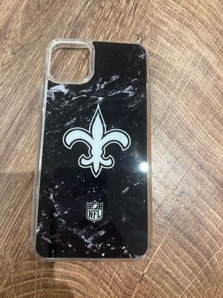 Custodia per iPhone 11 Pro Max, logo dei New Orleans Saints della NFL. NUOVA DA APRIRE - Design in marmo nero. Logo dei New Orleans Saints. Logo della NFL.